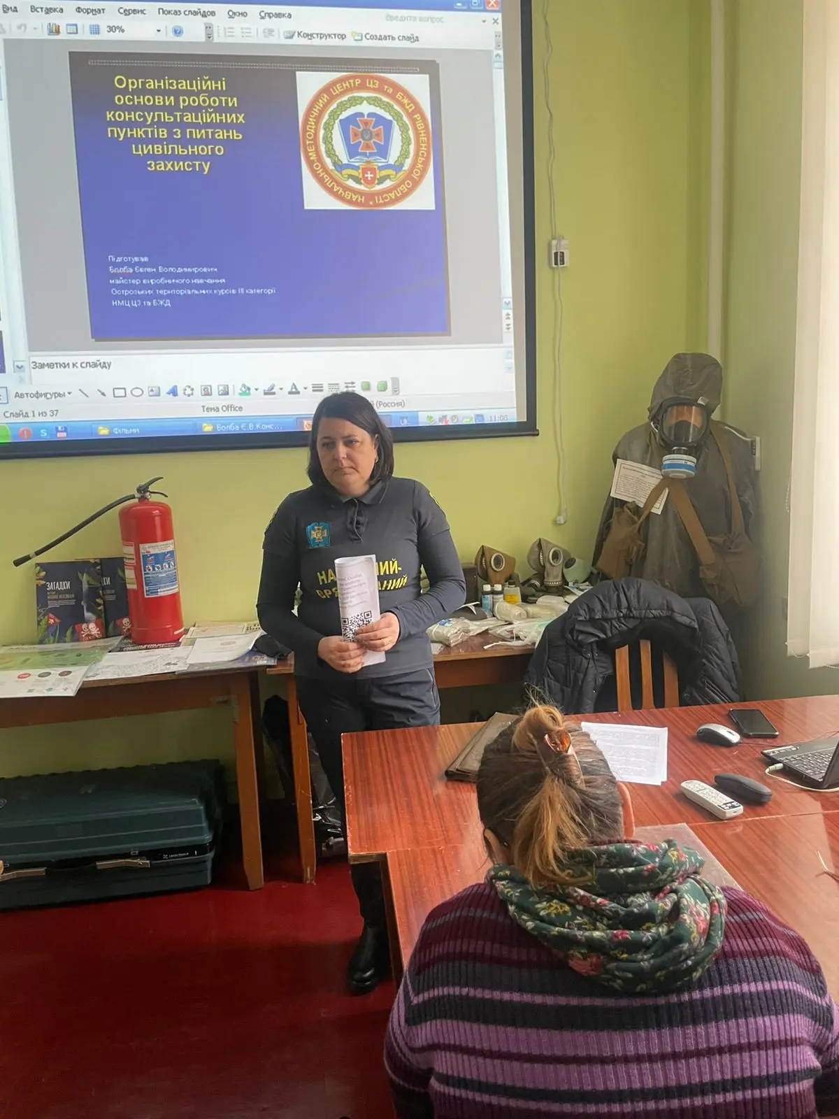Під час занять акцентовано увагу на формуванні практичних умінь щодо виконання функціональних обов’язків із проведення консультацій, бесід та інформаційно-роз’яснювальної роботи з населенням за місцем проживання; порядку ведення обліку заходів, проведених із непрацюючим населенням; організації та здійснення просвітницько-інформаційних заходів з питань захисту населення та дій в умовах надзвичайних ситуацій.