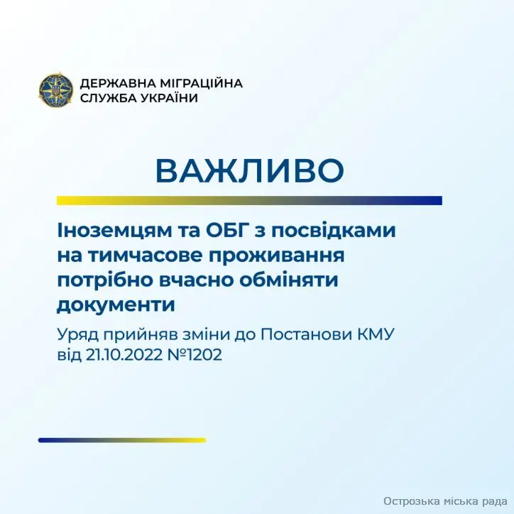Іноземцям та особам без громадянства з посвідками на тимчасове проживання потрібно вчасно обміняти документи » Острозька міська рада
