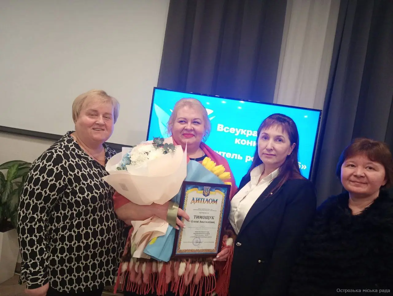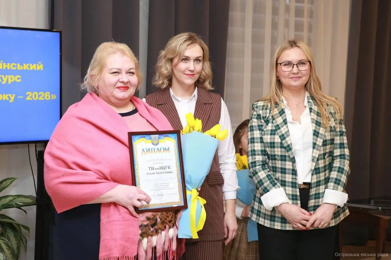 Вона не просто викладає предмет – вона вчить мислити, ставити запитання, чути іншу думку й брати відповідальність. Олена ТИМОЩУК, вчителька Оженинського ліцею імені Тараса Григоровича Шевченка, цьогоріч стала лауреаткою обласного етапу конкурсу «Учитель року – 2026» у номінації «Громадянська освіта». Її уроки не зводяться до сухої теорії. Конституція, права людини, принципи демократії – не просто терміни з підручника, а теми для живого діалогу. Учні дискутують про свободу слова, аналізують реальні суспільні виклики, вчаться аргументувати й поважати різні погляди. У класі панує атмосфера довіри, де кожен має право голосу. Участь у конкурсі стала можливістю представити власний педагогічний досвід на широкому рівні. Конкурс відбувався у два етапи – дистанційний та очний. Під час першого етапу педагогиня проходила тестування й демонструвала професійні напрацювання через показовий фрагмент уроку. У другому – знову складала фахові випробування та проводила урок на базі Рівненського ліцею № 13. Статус лауреатки – не фініш, а новий старт. Попереду – ще більше відповідальності, професійного зростання, обміну досвідом із колегами. І щоденна праця в класі, де формується найцінніше – Людина: відповідальна, небайдужа, здатна співпереживати та діяти. Її історія доводить: вчитель може змінювати країну. Починаючи з уроку. Пишаємося талановитими педагогами Острозької громади!