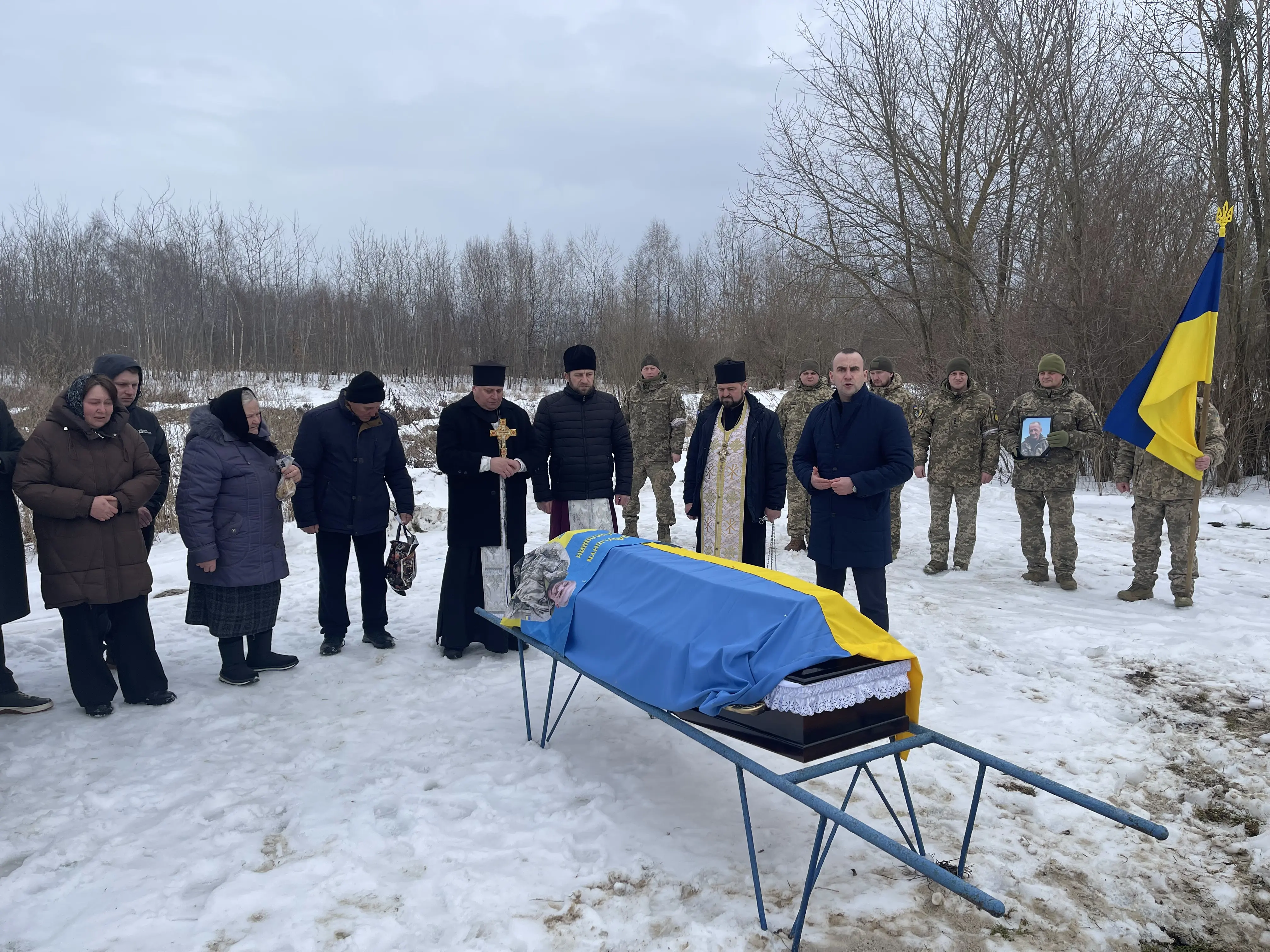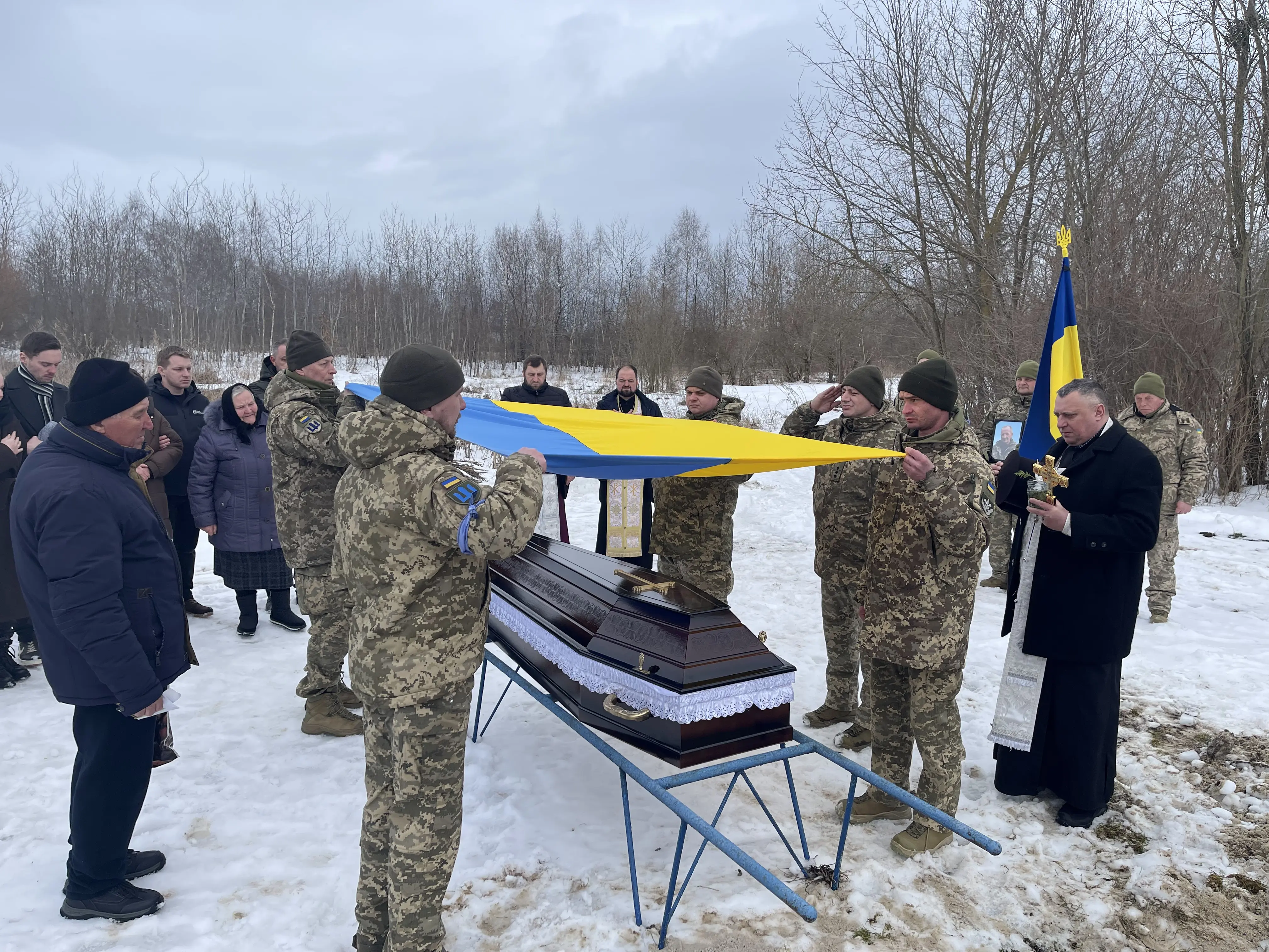 Під звуки Державного Гімну військові віддали почесні залпи, а над домовиною замайорів синьо-жовтий прапор — символ свободи, за яку він віддав життя.