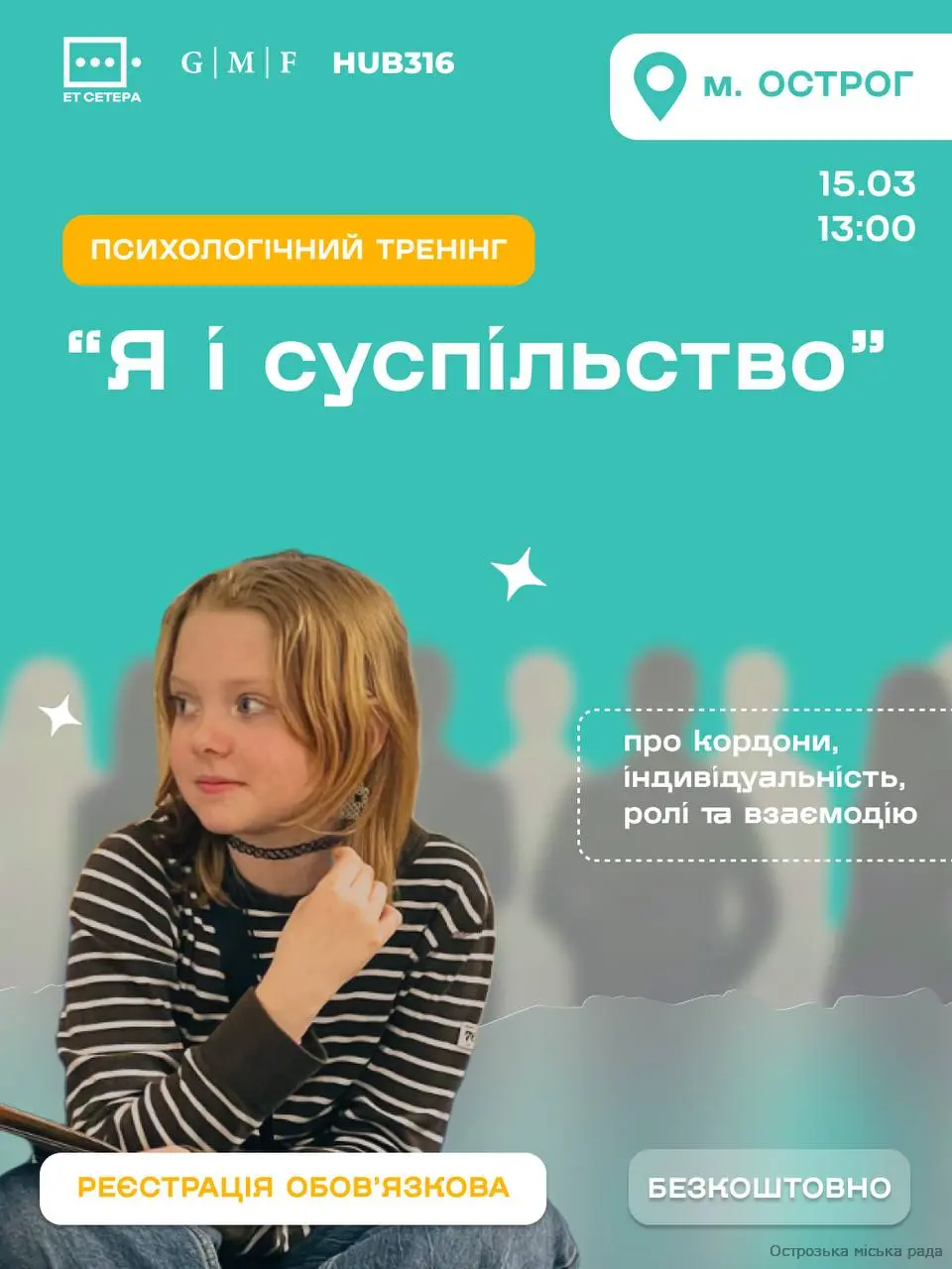 Для кого? Підлітки 13-17 років Коли і де? 15.03, 13:00 м. Острог, вул. Гальшки Острозької, 10 (Hub316)