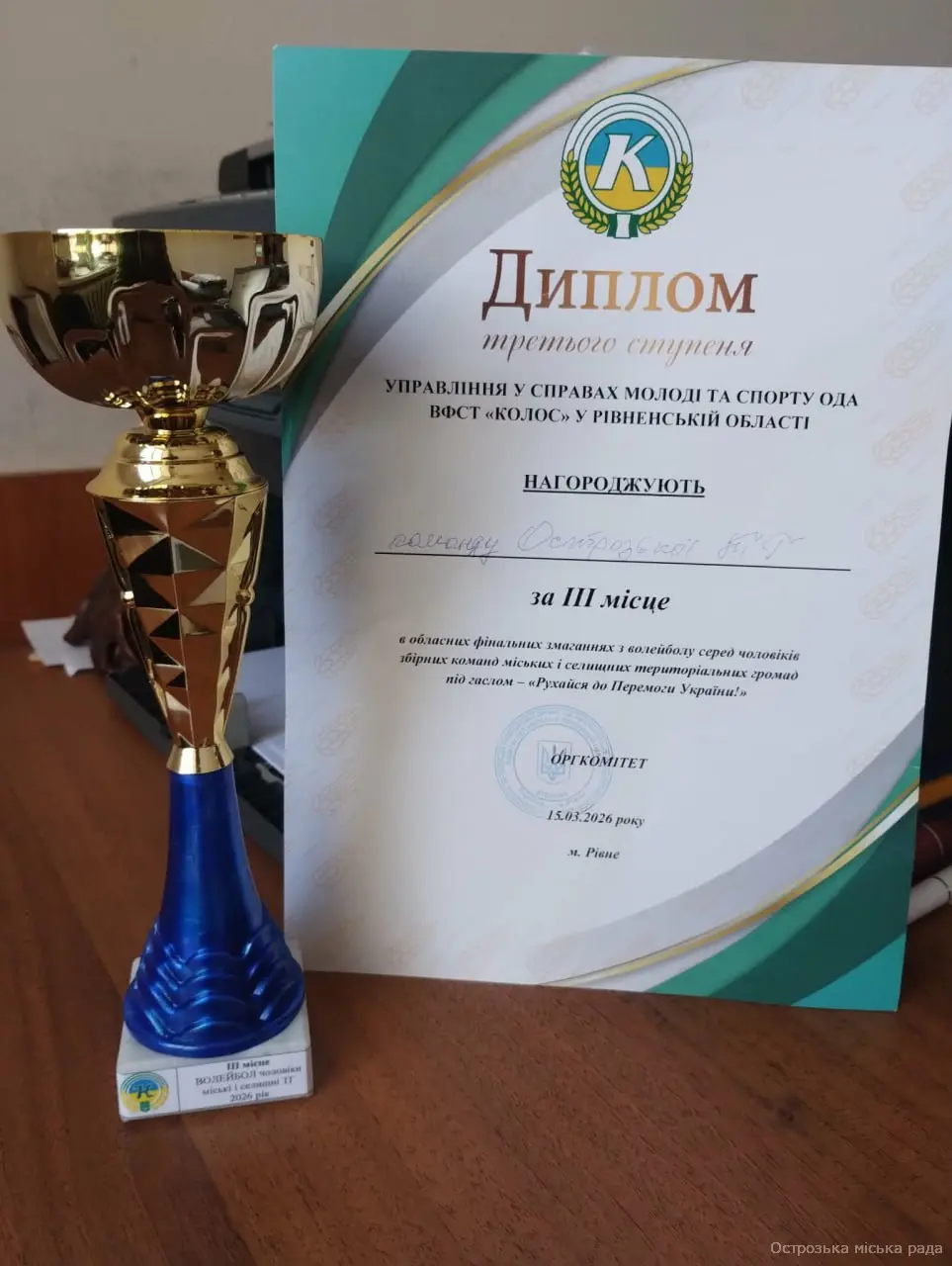 У неділю, 15 березня у м. Рівне відбувся фінал обласних змагань з волейболу серед чоловіків збірних команд міських та селищних територіальних громад під гаслом - «Рухайся до Перемоги України». Шість команд регіону були поділені на дві підгрупи, щоб визначити кращих з кращих. Збірна команда Острожчини, вже традиційно, була сформована з вихованців Острозької ДЮСШ різних років (тренери-викладачі Сергій Штундер та Оксана Гонта). У першому поєдинку у напруженій боротьбі острожани у трьох партіях, як і рік тому, поступилися команді Дубенської ТГ (2:1 по партіям). Далі був поєдинок з одним з головних фаворитів, представників Млинівської ТГ. Острожани, сенсаційно, обіграли суперника у трьох партіях (2:1). По підсумкам групового турніру острожани посіли 2 місце та вибороли можливість поборотися за «бронзу» змагань. Суперниками тут були спортсмени з Вараської ТГ, які також, не встояли перед натиском наших хлопців. Отож, знову важка перемога земляків (2:1) та почесне ІІІ місце серед еліти рівненського волейболу. Збірну Острожчини представляли Назар Клебан, Захар Климчук, Федір Лозюк, Назар Власюк, Артем Овсійчук, Ярослав Ковальчук, Дмитро Бережнюк, Олександр Аніховський, Юрій Задорожний та інші. На тренерському «містку» керувала командою Оксана Гонта. Варто зазначити, що Оксана Вікторівна допомагала у суддівстві змагань та була головною суддею поєдинку за перше місце. Вітаємо волейбольний колектив з Острожчини з вагомим результатом!!! Дякуємо ЗСУ за можливість змагатися та перемагати!!!