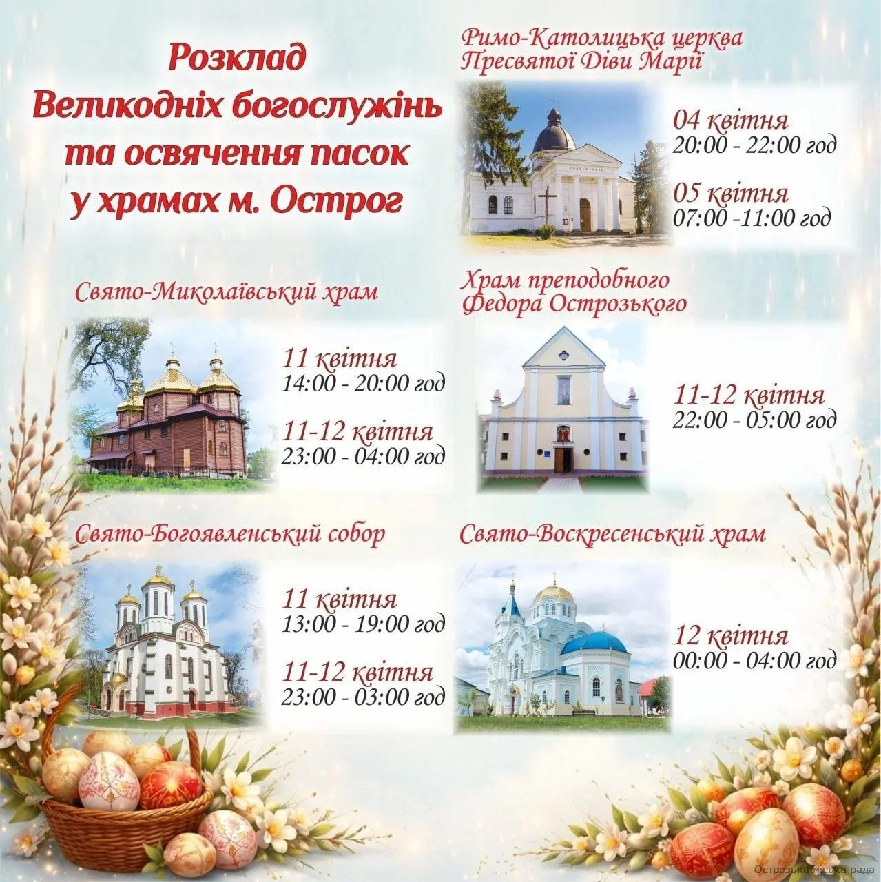 Розклад Великодніх богослужінь та освячення пасок у храмах м.Острог » Острозька міська рада