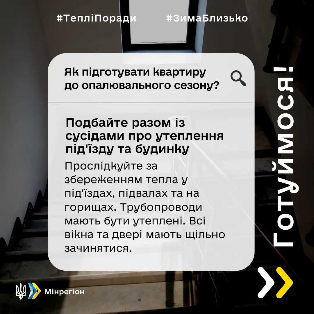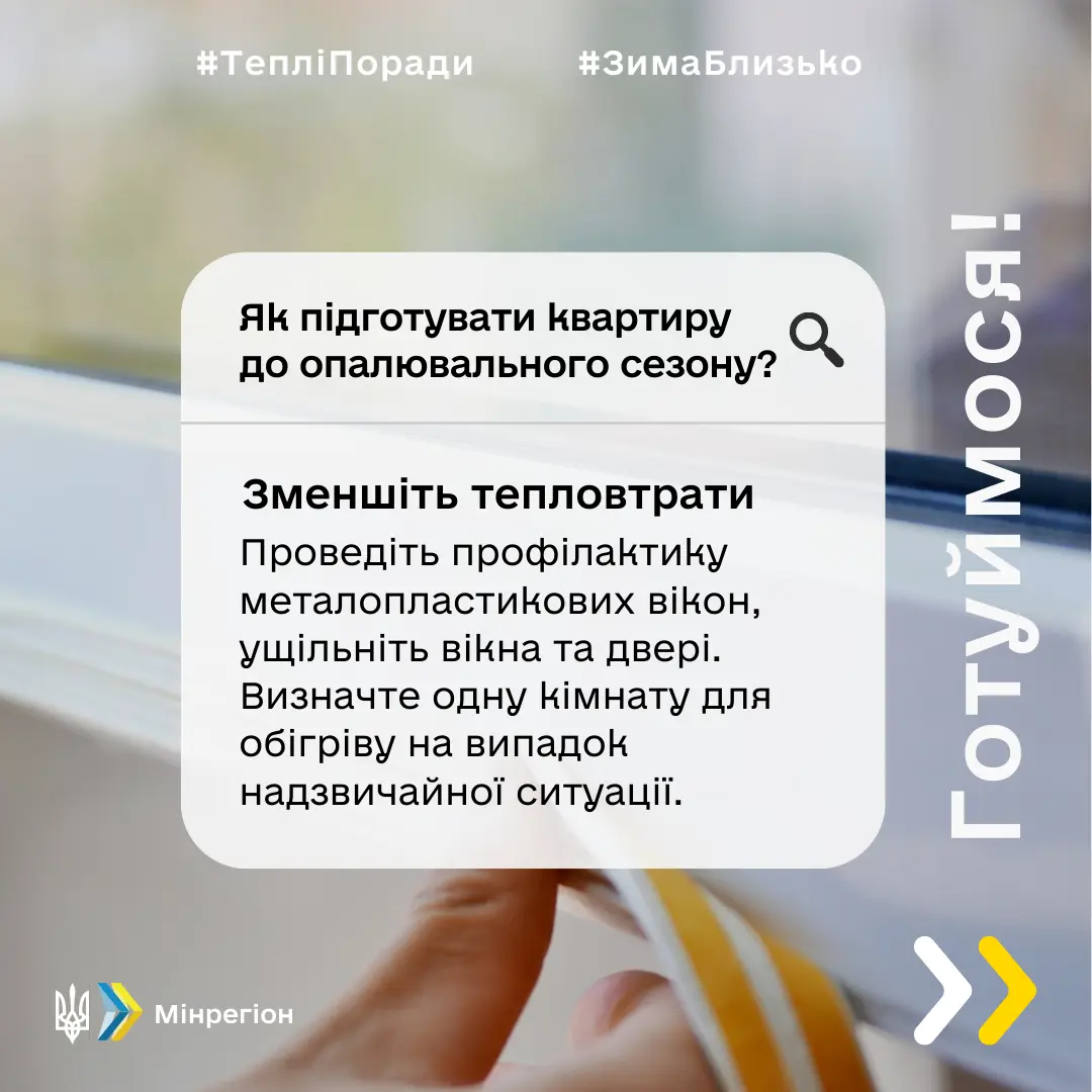 Одним із важливих заходів підготовки є проведення побутової термомодернізації власниками квартир та індивідуальних будинків. Саме проведення таких первинних заходів дозволить зменшити втрати теплової енергії та створити оптимальний мікроклімат в оселях.